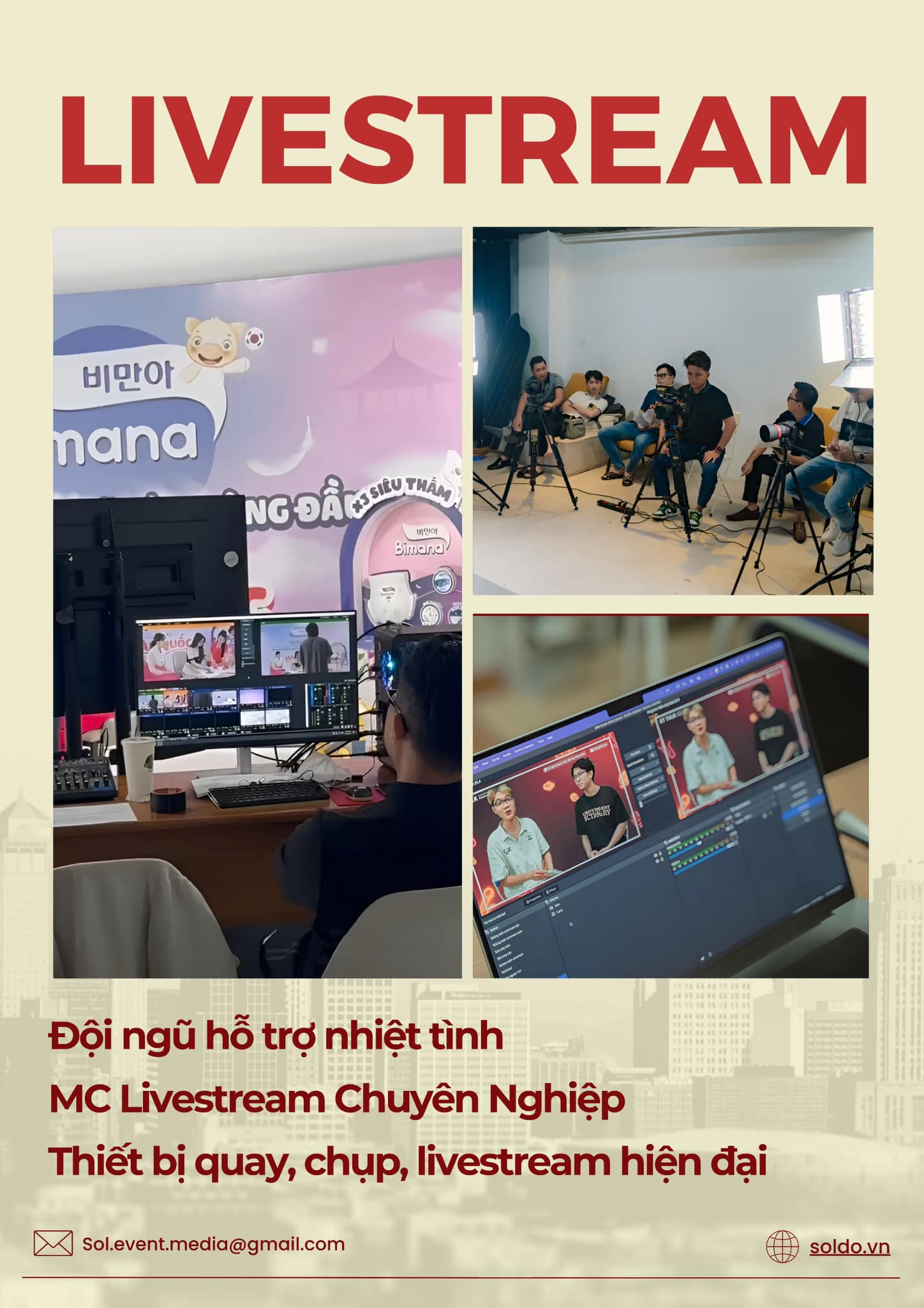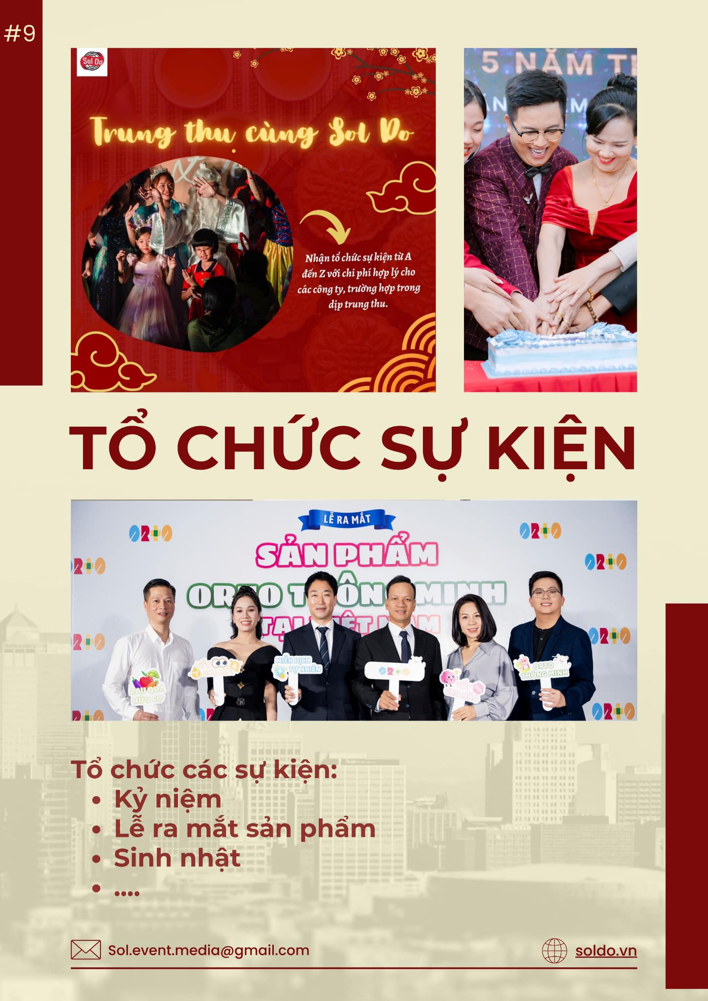 Sol Do tự hào là đơn vị có bề dày kinh nghiệm tổ chức sự kiện cung cấp quay phim, chụp ảnh, nhân sự sự kiện, MC và các dịch vụ truyền thông, PR, quảng cáo,… với đội ngũ nhân sự chuyên nghiệp, sáng tạo, năng động Sol Do cam kết mang đến cho quý khách hàng những sự kiện chỉn chu, chất lượng nhất cùng những chi phí siêu hợp lý.